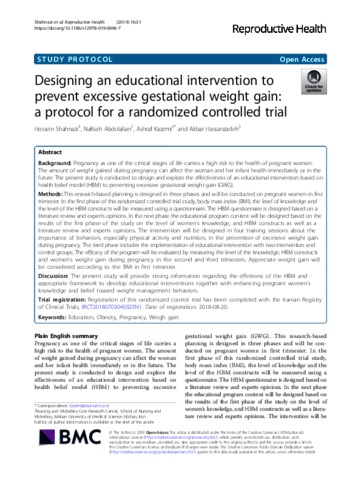 (2019) Designing an educational intervention to prevent excessive gestational weight gain: a protocol for a randomized controlled trial. Reproductive Health. ISSN 1742-4755