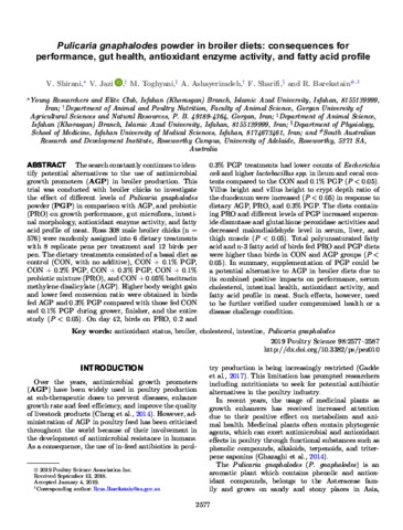 (2019) Pulicaria gnaphalodes powder in broiler diets: consequences for performance, gut health, antioxidant enzyme activity, and fatty acid profile. Poult Sci. pp. 2577-2587. ISSN 1525-3171 (Electronic) 0032-5791 (Linking)